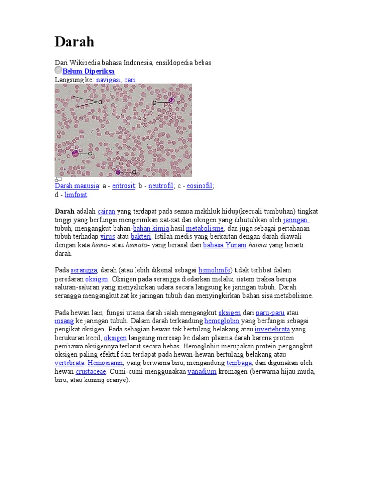 Darah Wikipedia Bahasa Indonesia Ensiklopedia Bebas