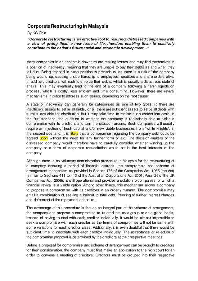 Corporate Restructuring In Malaysia