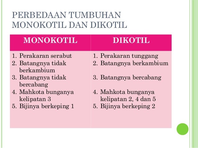 Perbedaan Monokotil Dan Dikotil Pada Tumbuhan Tabel Gambar