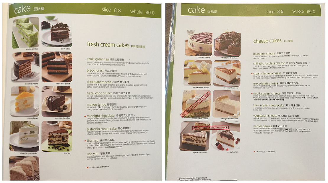 Vegetarian Secret Recipe Cakes Cafe Malaysia