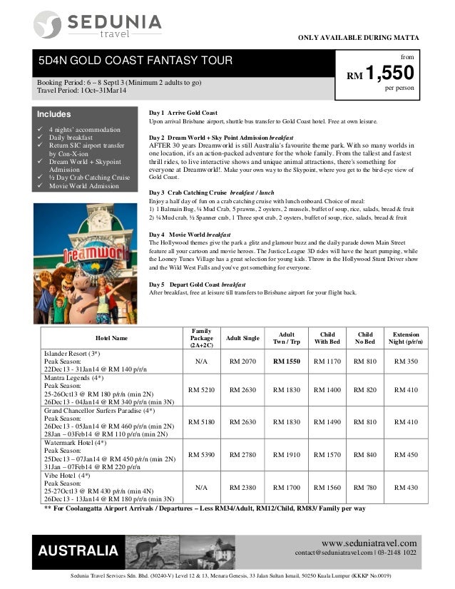 5d Gold Coast Australia Matta Fair Package