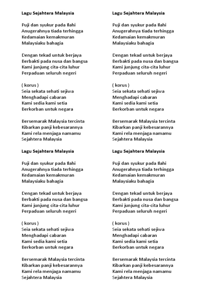 Lirik Lagu Sejahtera Malaysia