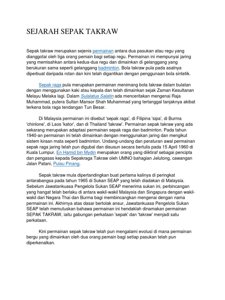 Doc Asal Usul Sepak Takraw Noraini Bain Academia Edu