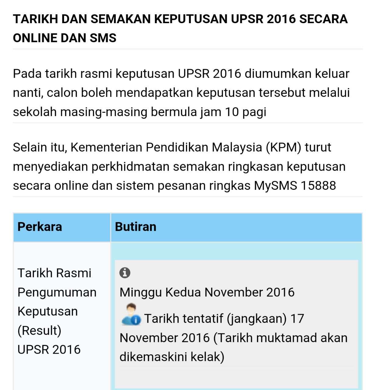 Tarikh Rasmi Keputusan Upsr 2016 Diumumkan Mobile