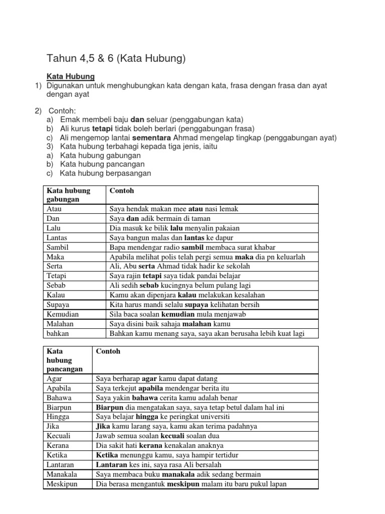 Contoh Karangan Bahasa Melayu Upsr Nota Tatabahasa Upsr Kata Hubung