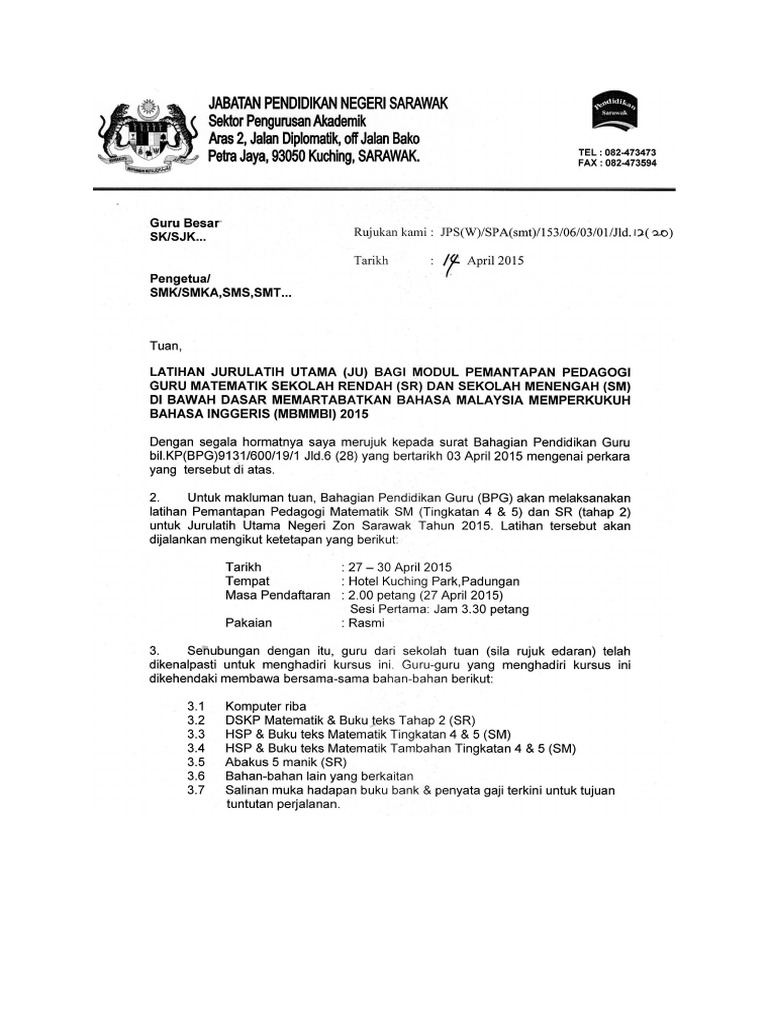 Surat Jemputan Latihan Ju Pedagogi 2015 Sr