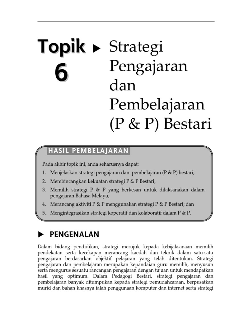 Topik 6 Strategi Pengajaran Dan Pembelajaran P P Bestari