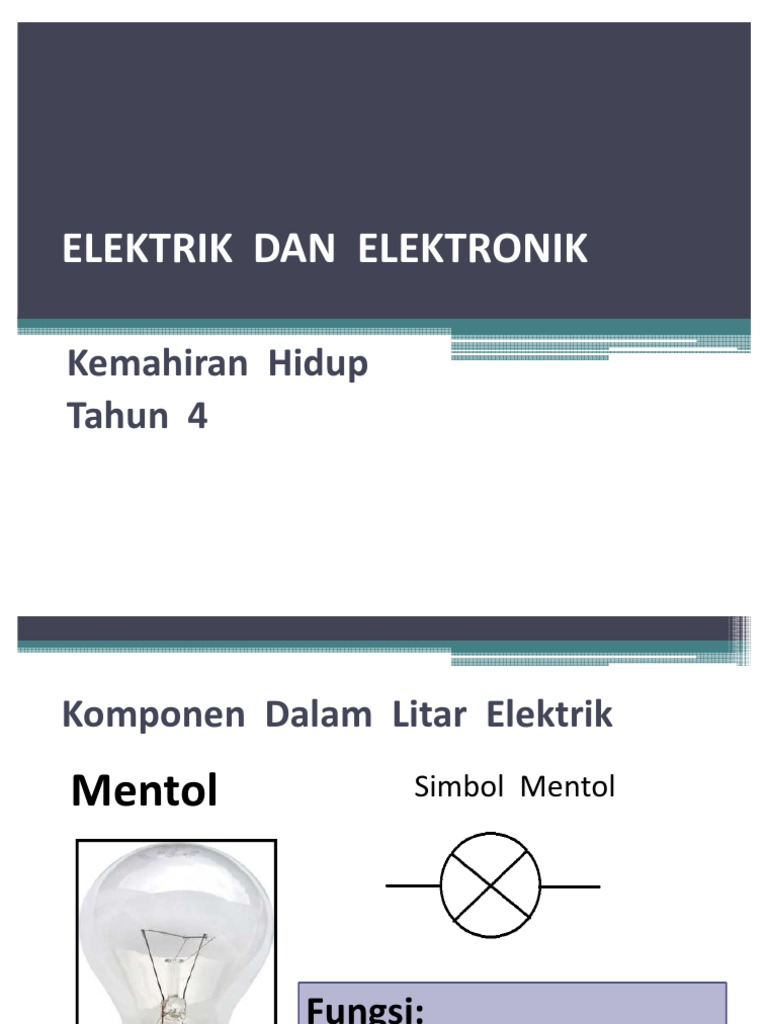 Simbol elektrik sains tahun 5. Terdapat pelbagai sumber tenaga elektrik. 2 1 nama simbol dan fungsi komponen elektronik simbol l e d. Elektrik yang kecil mengalir dari terminal positif ke terminal negatif wayar penyambung menyambung semua komponen dalam litar komponen.