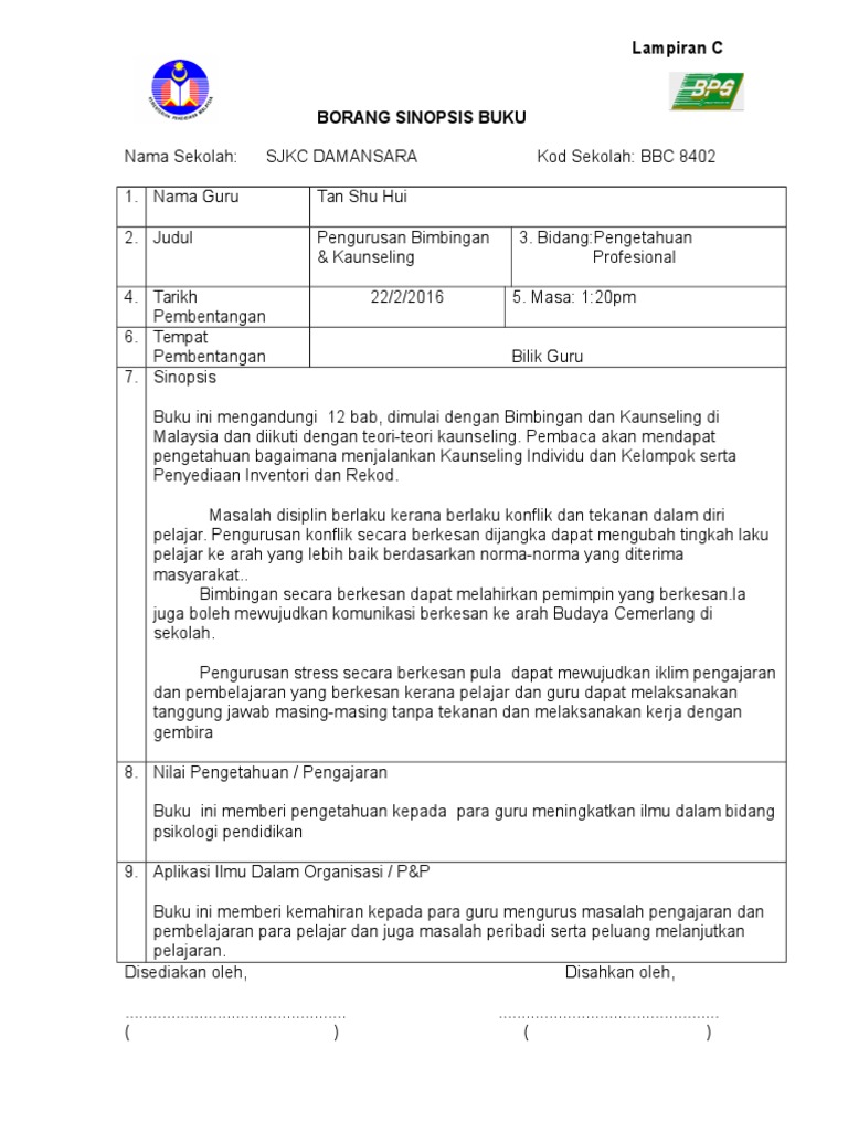 87842623 Borang Sinopsis Buku Untuk Guru Doc Lampiran C Borang Sinopsis Buku Nama Sekolah Smk Kapit Kod Sekolah Yee 7101 1 2 Nama Guru Judul 4 6 7 Course Hero