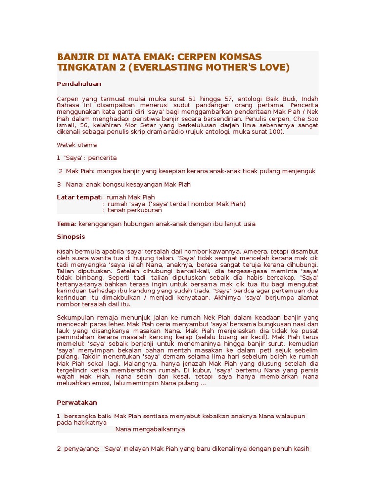Banjir Di Mata Emak Cerpen Komsas Tingkatan 2 Everlasting Mother S Love
