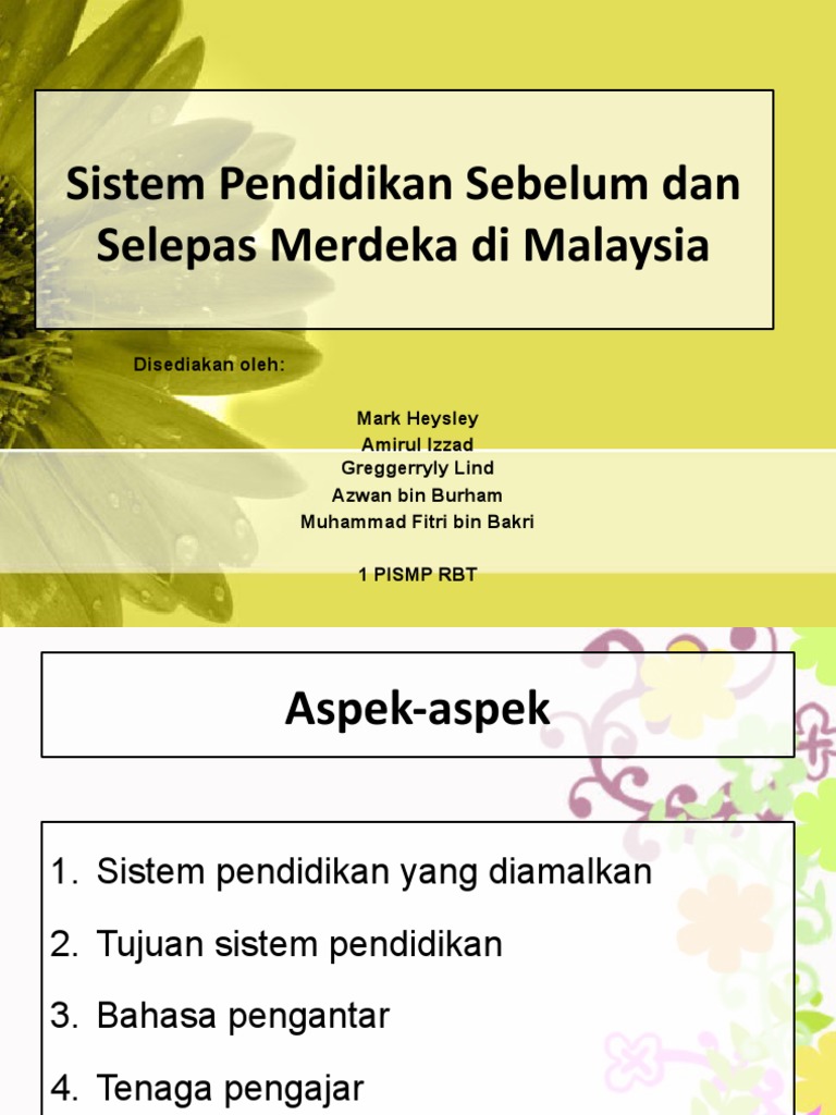 Sistem Pendidikan Di Malaysia Sebelum Dan Selepas Kemerdekaan