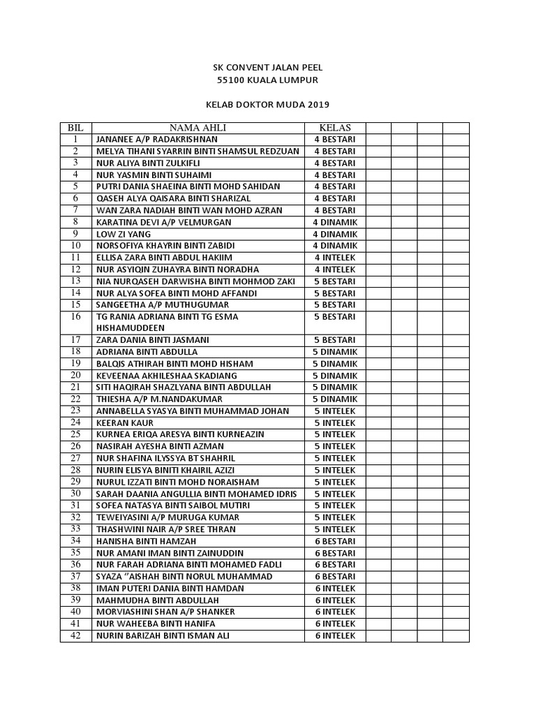 Sk Convent Jalan Peel 55100 Kuala Lumpur Kelab Doktor Muda 2019